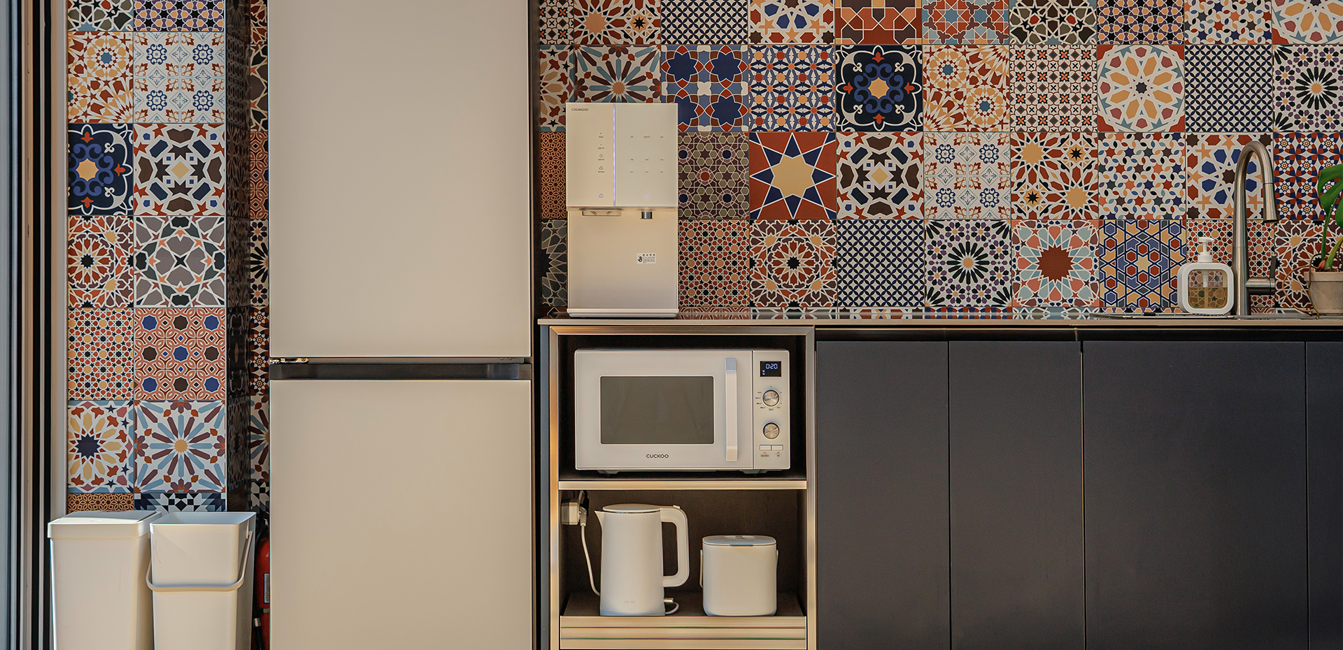 TV, 냉장고, 정수기, 밥솥, 전자렌지, 전기포트, 인덕션 2구, 각종 조리 도구, 공기청정기, 드라이기, 샴푸, 린스, 바디워시, 치약, 전기 그릴, 와인잔